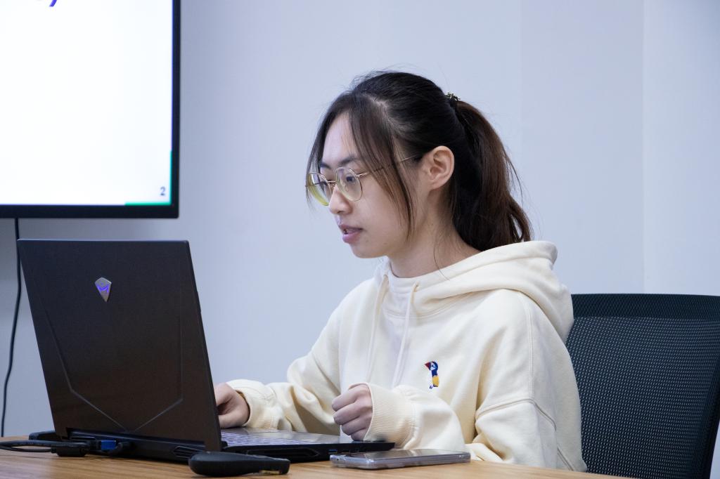 紧接着,徐尧同学围绕两个问题展开阐述硕果计划的经验。她以自身经历为同学们解答了“为什么选择参加硕果计划?”“硕果计划需要做哪些工作?”最后徐尧倡导同学们积极参加硕彦硕果计划,充分利用学校的科研资源,体验科研生活,收获意想不到的惊喜。