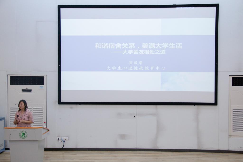 活动伊始,崔凤华以自己度过大学宿舍时光的心路历程为引,向大家描绘了一个温馨和谐、互帮互助的宿舍大家庭场景。她谈到,宿舍是大学里的最小单元和亲密关系的主要来源地,在此拥有良好的人际交往不仅是满足同学们对人际交往的需求,更是对大家身心健康得以保证的基础和关键。“友谊的一大奇特作用是:如果你把快乐告诉一个朋友,你将得到两个快乐;而如果你把忧愁向一个朋友倾诉,你将被分掉一半忧愁。”崔凤华引用英国哲学家弗朗西斯·培根的话,勉励大家以向心力、凝聚力为切入点与室友建立亲密关系,进行人际交往并借此将宿舍打造成为温馨和睦的大家庭。