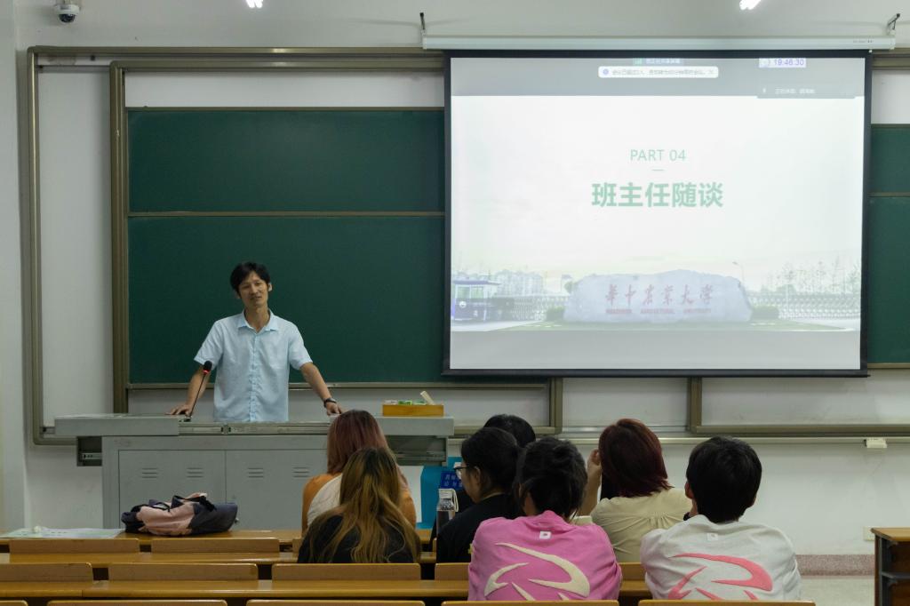 应生2101班以“新学期、新起点、新征程”为题,展开收心班会。农业昆虫教工党支部书记黄求应老师首先对暑期专业课程实习进行了总结,他肯定了同学们的付出,勉励同学和老师们一同努力擎画应用生物科学专业的碧海蓝天。班主任蔡青对同学们的成绩提出了更高的要求,希望各位同学在大三明确好自己的职业方向。