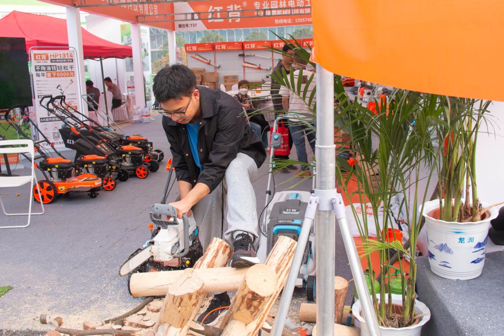 进入会场,“高端机具让农业生产更精准、更高效”、“让新农人像玩游戏一样去种地”、“让收获更完美”、“科技创新、共享丰收”等标语吸引着同学们的目光。同学们在工作人员的介绍和指导下,上手体验伐木电锯、绿篱修剪机、轮式拖拉机等设备。展会现场农机种类丰富,内容覆盖全面,同学们在参观展览的过程中观现代农业科技,触先进农机装备,收获了良好的体验。