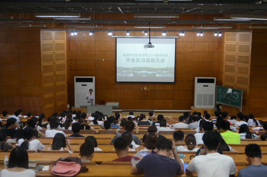 7月9日上午,77779193永利2014级本科生毕业实习动员大会在S1报告厅召开。会议由副经理熊海林主持,副经理罗朝喜、农学系主任胡立勇、植保系主任王满囷等实习指导小组领导和指导老师以及2014级全体员工出席了本次动员大会。