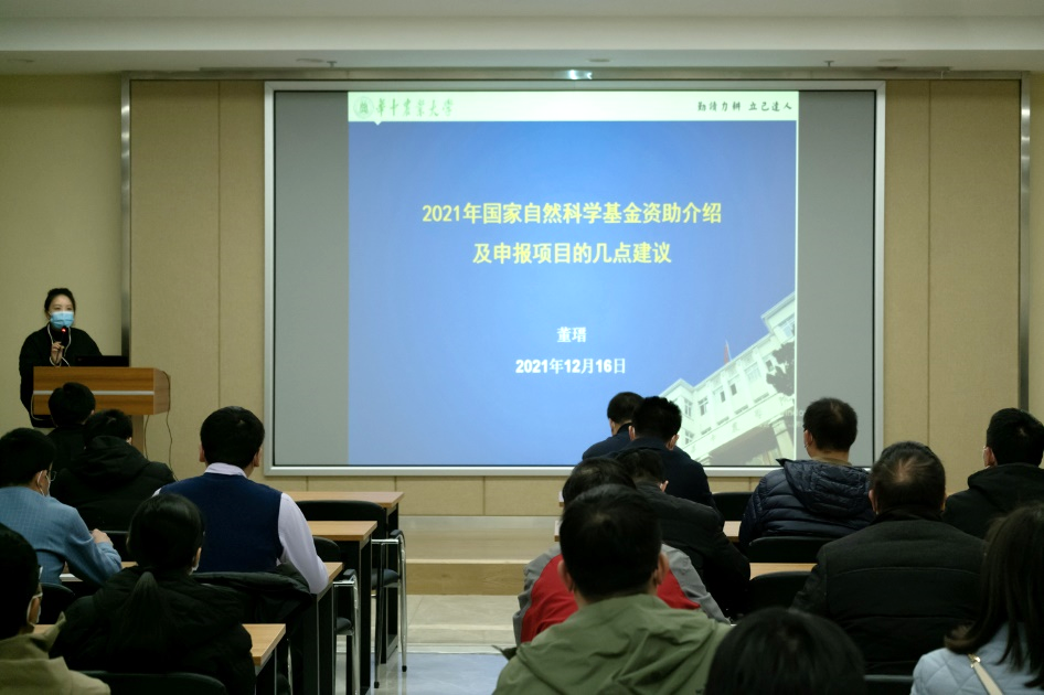 12月16日下午,国家自然科学基金项目申报辅导报告在第三综合楼A705报告厅举行,科发院基础研究处董瑨老师和学院姜道宏教授应邀作报告,学院全体教职工与会。