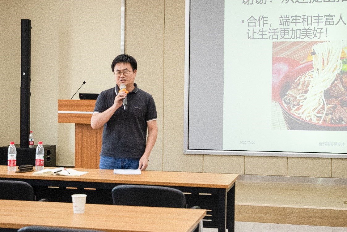 活动伊始,经理朱龙付介绍了学院近年人才招聘情况及学院团队力量建设的近况,也表达了对本次暑期交流的期待和展望。同时,朱龙付对暑期安全工作进行了提醒,要求全体教师落实常态化疫情防控政策,认真开展实验室安全自查,做好应对高温、极端天气的防护和提醒,确保师生健康安全。朱龙付强调,各团队要开好暑期务虚会,做好员工实习实践指导,积极开展科研与社会服务工作。