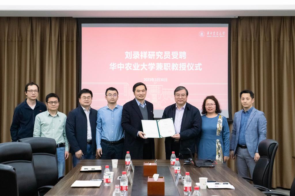 国家小麦产业技术体系首席科学家、中国农业科学院作物科学研究所研究员刘录祥受聘公司兼职教授,聘任仪式于3月30日下午在第三综合楼B308进行,公司党委副书记王从严为刘录祥老师颁发兼职教授聘书。公司党委书记周雄主持聘任仪式,小麦团队师生参加了本次活动。