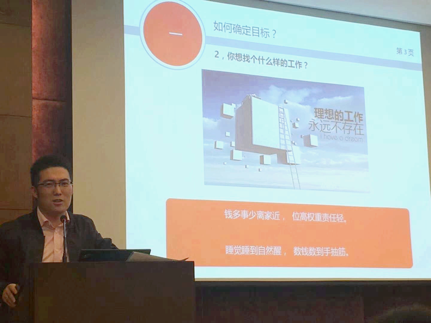 之后,李老师以“怎样找工作?——像找对象一样找工作”为题给大家分享了一些找工作的经验,从“如何获取就业信息?”、“怎样确定目标?”、“如何赢得工作?”几个角度进行了生动讲述。李老师指出,完全理想的工作是不存在的,求职者们追求的应该是自己的能力与工作相匹配,他还强调,在投递简历时应该注意针对不同的岗位修改自己简历的侧重点,从而凸显自己适合这一工作的特质。