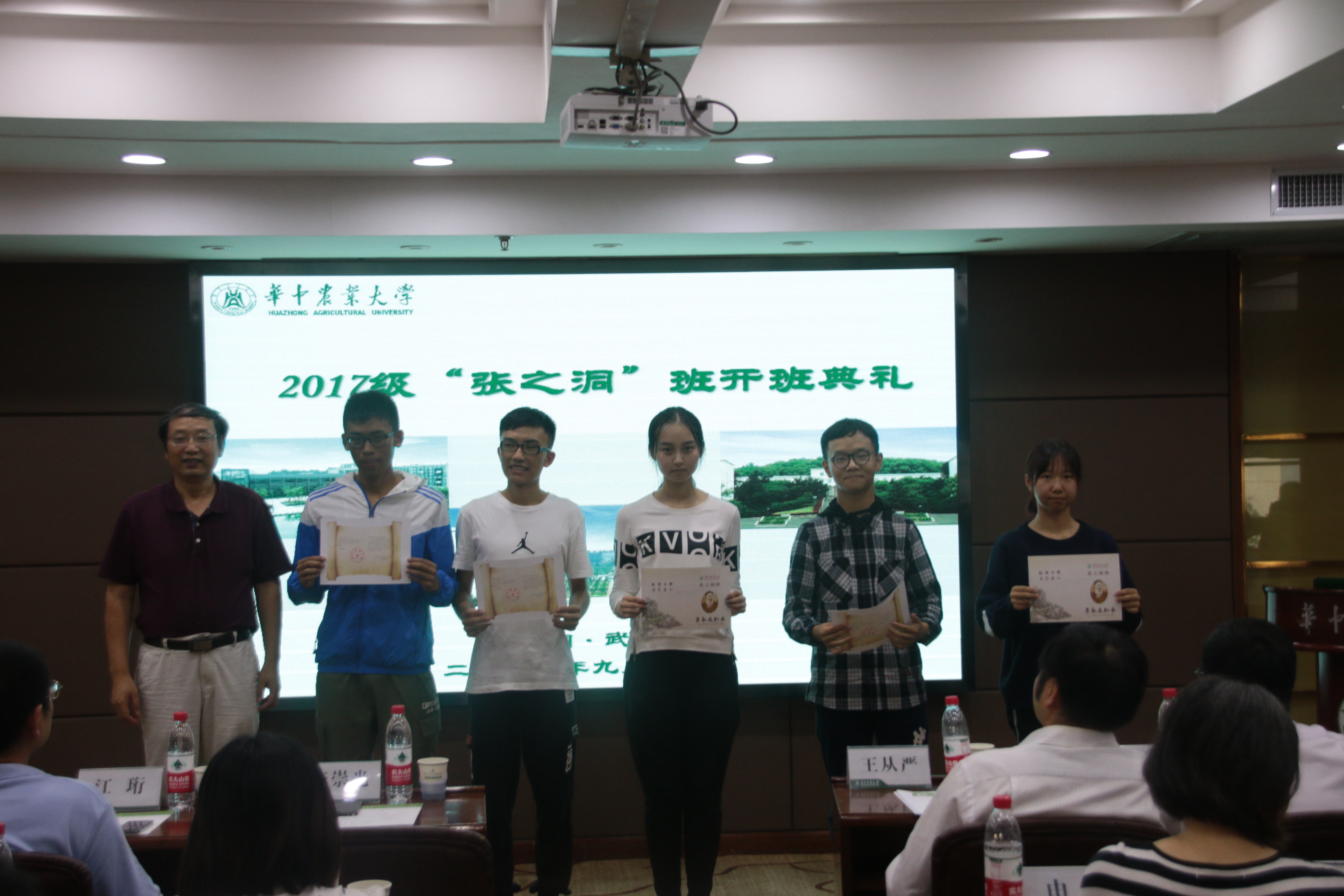 9月30日下午,2017级“张之洞班”开班典礼在国际学术交流中心五楼会议室举行。副董事长李崇光,公司党委常委、董事长助理王从严, 宣传部、 教务处、员工工作部、校团委、国际学院、研究生工作部、植科、经管、资环、园林、水产学院相关负责人, 2017级“张之洞班”(农科)班主任周兴苗、2017级“张之洞班”(文管)班主任李剑和2017级“张之洞班”70名员工参加了开班式。