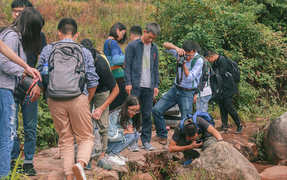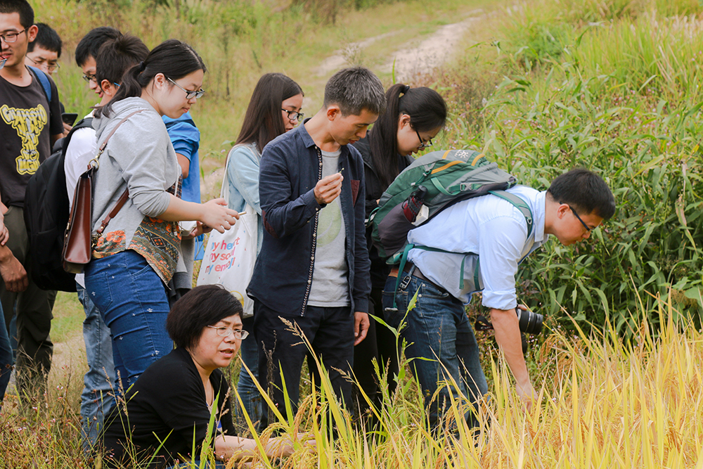 李明攀同时就水稻的留种问题咨询了胡立勇、汪波老师。胡立勇老师还给同学们讲解了中国水稻栽培从自留种到杂交种的栽培演变过程,以及水稻田绿肥紫云英种子播撒的时间把握和水位管理。在参观完农场的田地之后,同学们顺着溪流追溯了农场水稻所使用的水源。