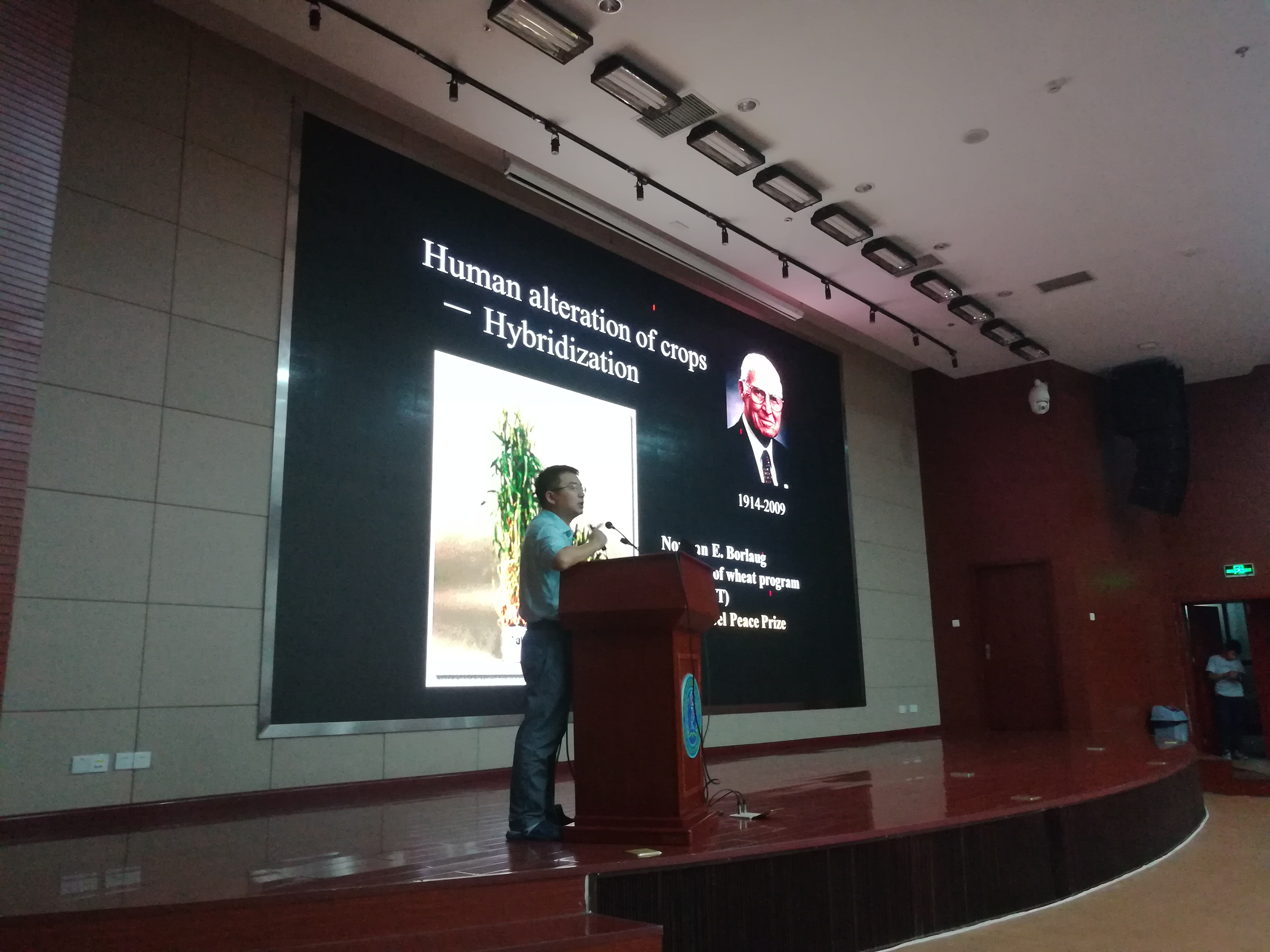 他强调,第一次绿色革命主要成果是使粮食作物增产20%,极大地缓解世界人口的粮食短缺;而第二次绿色革命则更多地关注少投入、多产出、保护环境等问题。“这也正是中国农业发展的写照,经过无数科学家的努力,实现粮食基本自足,但现在农业污染问题却迫在眉睫,化肥、农药的使用,导致农业污染占据环境污染的70%。”他激励在场的同学们说,希望大家努力学习科学文化知识,为中国农业发展做出贡献。
