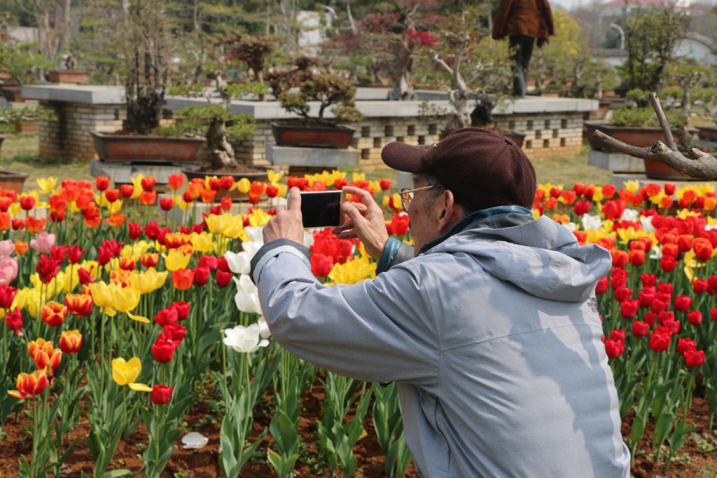 今天参加活动的老同志共35名,平均年龄70多岁,最年长的88岁,踏青过程中他们兴致盎然、结伴前行。从党支部书记荣秀兰老师那里了解到,游校园这个活动已连续开展三年,成为支部一项保留活动。谈到组织活动的初衷,荣秀兰老师表示希望通过该活动加深老同志们之间的感情,一起感受学校日新月异的变化,同时让老同志们在万物竞生的春天感受樱粉桃红,油菜花黄,多彩郁金香的美丽,放松心情。