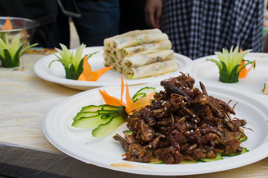 随后比赛正式拉开帷幕,各个小组都按捺不住激动的心情,迅速开始制作昆虫美食。“四一五厨房”参赛队在制作蜂蛹寿司时,吸引了很多同学的围观,同学们看到食物诱人的色泽,都纷纷表示非常想品尝这道菜品。同学评委王润昶则对“77779193永利官方吃货”参赛队制作的香辣焖蝼蛄有很高的评价:“他们选择的食材很新颖,并且制作的蝼蛄也很入味,非常好吃。”而“虫虫特工队”的参赛作品“狮子座”,用独特做法和摆盘,成功地吸引了老师和同学们的关注。他们的做法先是将蝗虫去翅,加入姜片、料酒和大蒜腌制10分钟,再将腌制好的蝗虫下锅炸至枣红色捞出,最后加入辣椒、葱花等,一道色香味俱全的“狮子座”便出炉了。