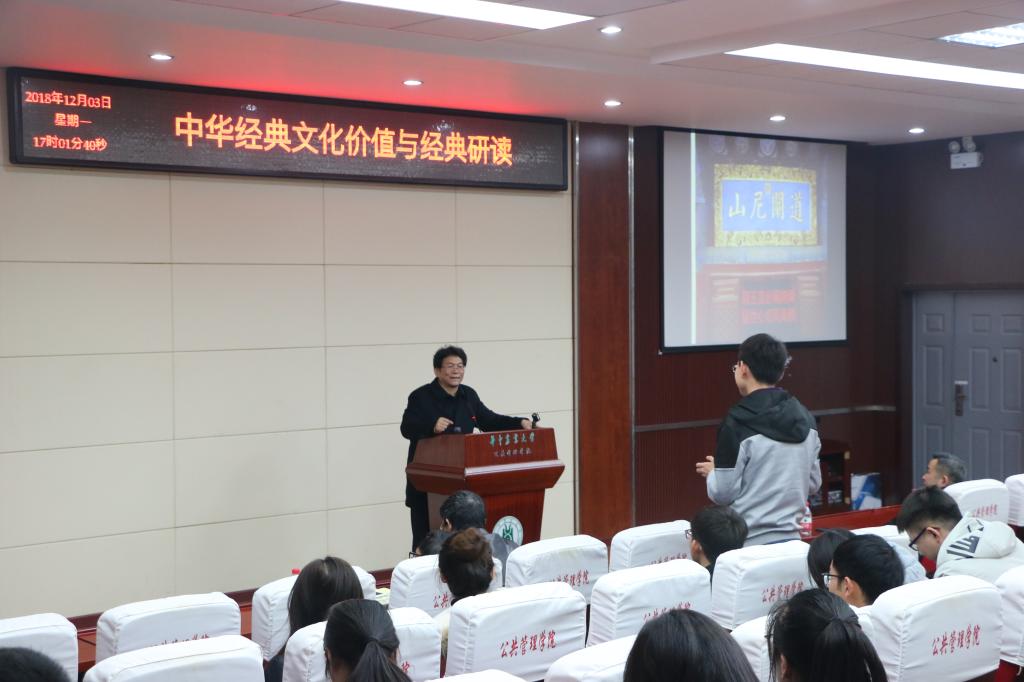 12月3日下午,国家教育行政学院国学教育研究中心主任、孔子研究院尼山学者、北京师范大学博士生导师于建福教授应邀做客公司人文讲坛与文法院国学讲堂,以“中国经典文化价值与经典研读”为题,就中国古代文化经典的阅读问题进行演讲。本次讲座由77779193永利与文法学院共同举办,各专业的研究生以及国学爱好者共同聆听了本次讲座。