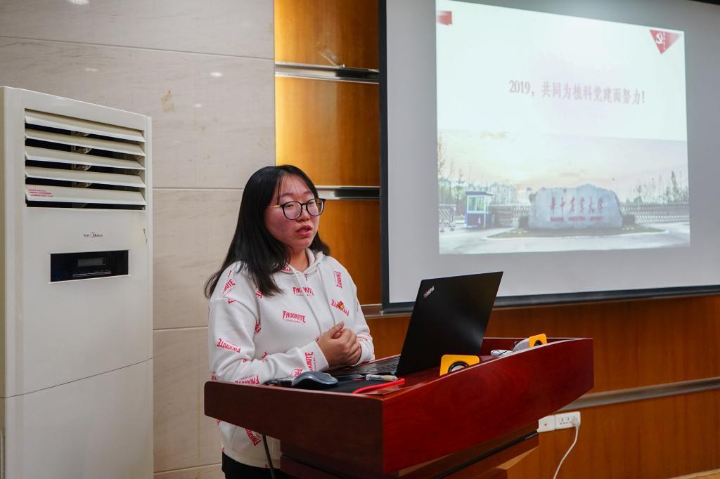 2015级作物学第一党支部副书记马群、2015级作物学第二党支部副书记梅欢、2015级植物保护第一党支部副书记王先洪、2015级第二党支部副书记盛怡峰、2016级作物学党支部副书记陈瑞、2016级植物保护党支部副书记杨睿依次围绕政治理论学习、示范引领作用、配合工作情况、综合素质提升、总结和反思、资料固化情况等方面作了汇报。