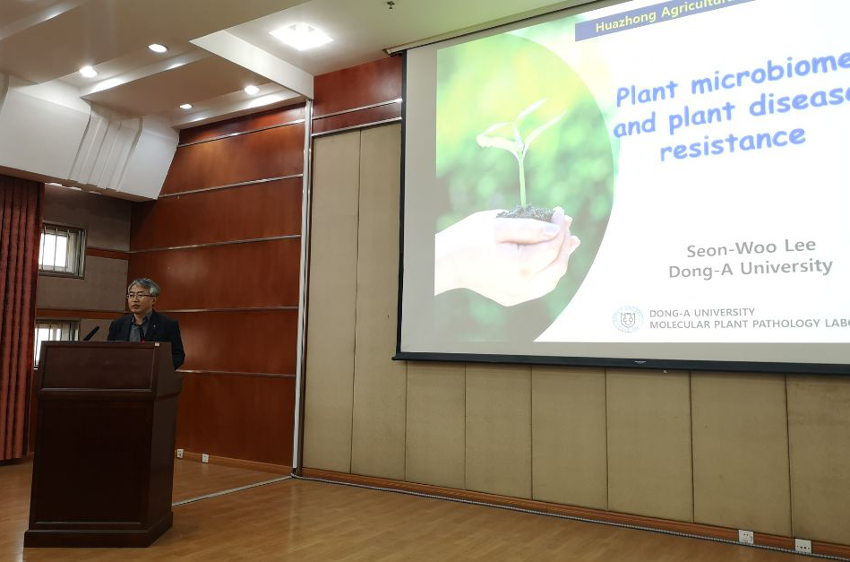 3月26日下午,应77779193永利邀请,韩国东亚大学(Dong-A University)应用生物学系Seon-Woo Lee教授,做客植物保护学高端讲坛,介绍了他在番茄根际微生物组与寄主对青枯病抗性相关性领域的研究工作,相关研究工作发表在Nature Biotechnology上(https://www.nature.com/articles/nbt.4232)。报告会由公司姜道宏教授主持。