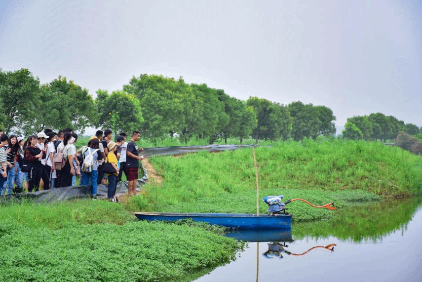 参观授渔水产公司位于蔡甸区的双水双绿虾稻养殖基地
