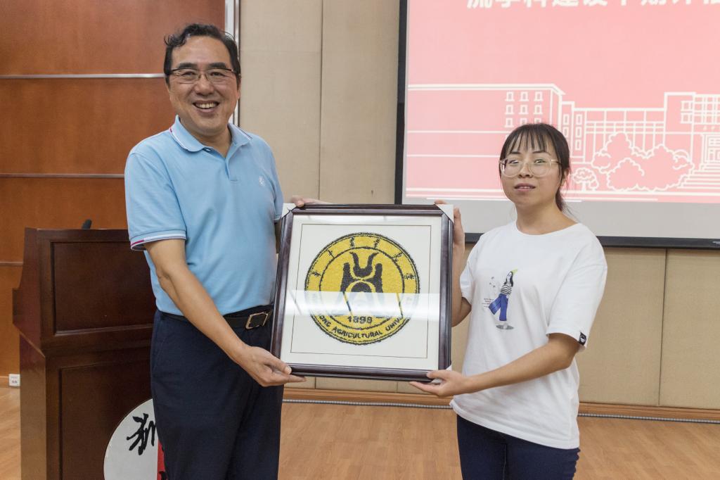论坛最后,两位院士还与现场师生就当前植物保护学科发展与员工未来成长与发展等问题进行了深入交流,员工代表也向两位院士赠送了公司校徽种子画。