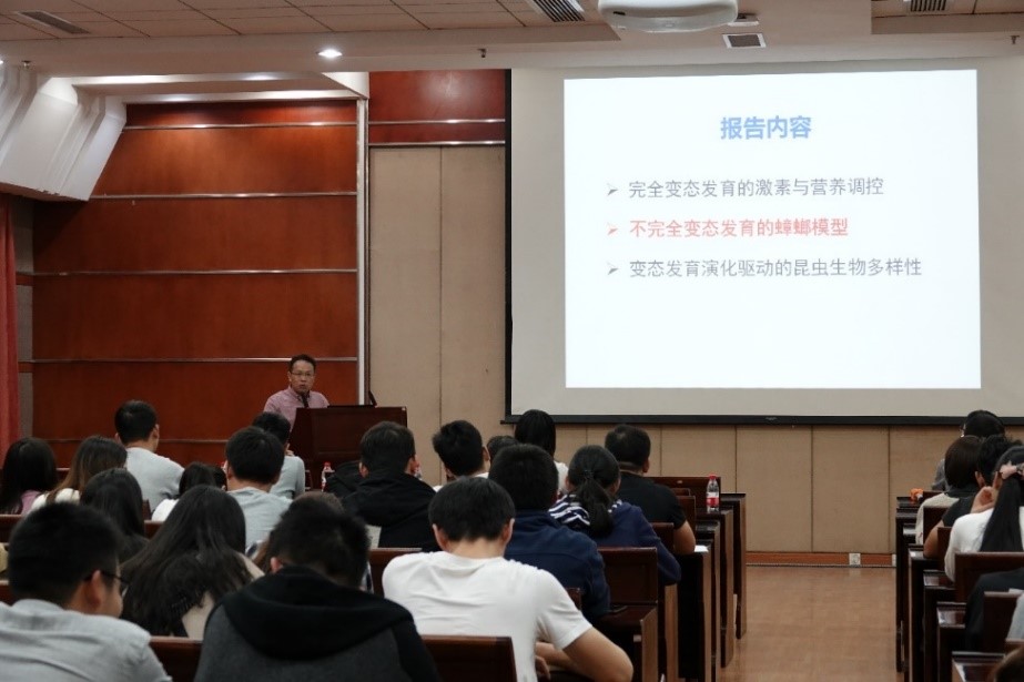 10月24号下午,由公司植物科技学院主办的74期植物保护高端讲坛在分子楼一楼报告厅举行。华南师范老员工命科学学院李胜教授为到场的200余名师生报道了“变态发育与昆虫生物多样性”的最新进展,报告由黄求应老师主持。