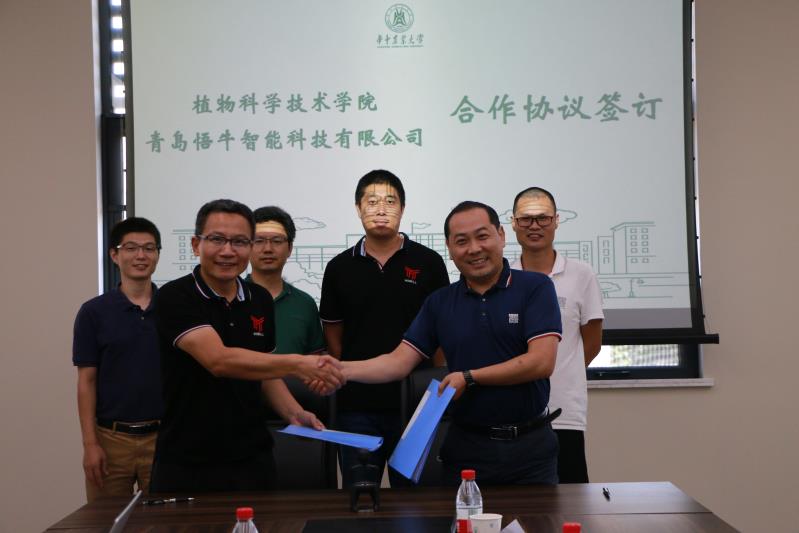 8月15日上午,学院经理朱龙付、党委副书记孙超、作物信息教研室教师宋鹏及本科生工作办、实验教学中心相关教师在三综B308会议室同青岛悟牛智能科技有限公司董事长兼CEO尹本强、运营总监房克一行进行了座谈交流。双方签订了《关于共建老员工实践实习基地的备忘录》。