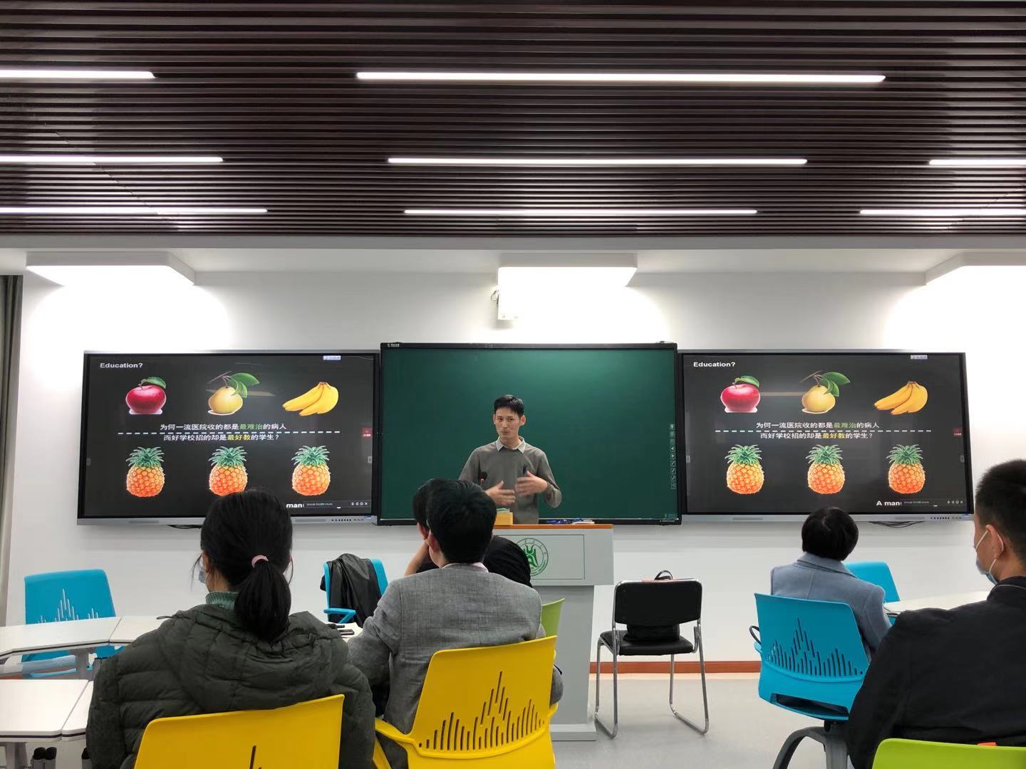 最后,周兴苗幽默风趣的讲述了苹果、梨、香蕉被培养成菠萝的例子,并由此引出传统教育思维上的弊病。他说道:“教育的本质不是把篮子装满,而是把灯点亮。”