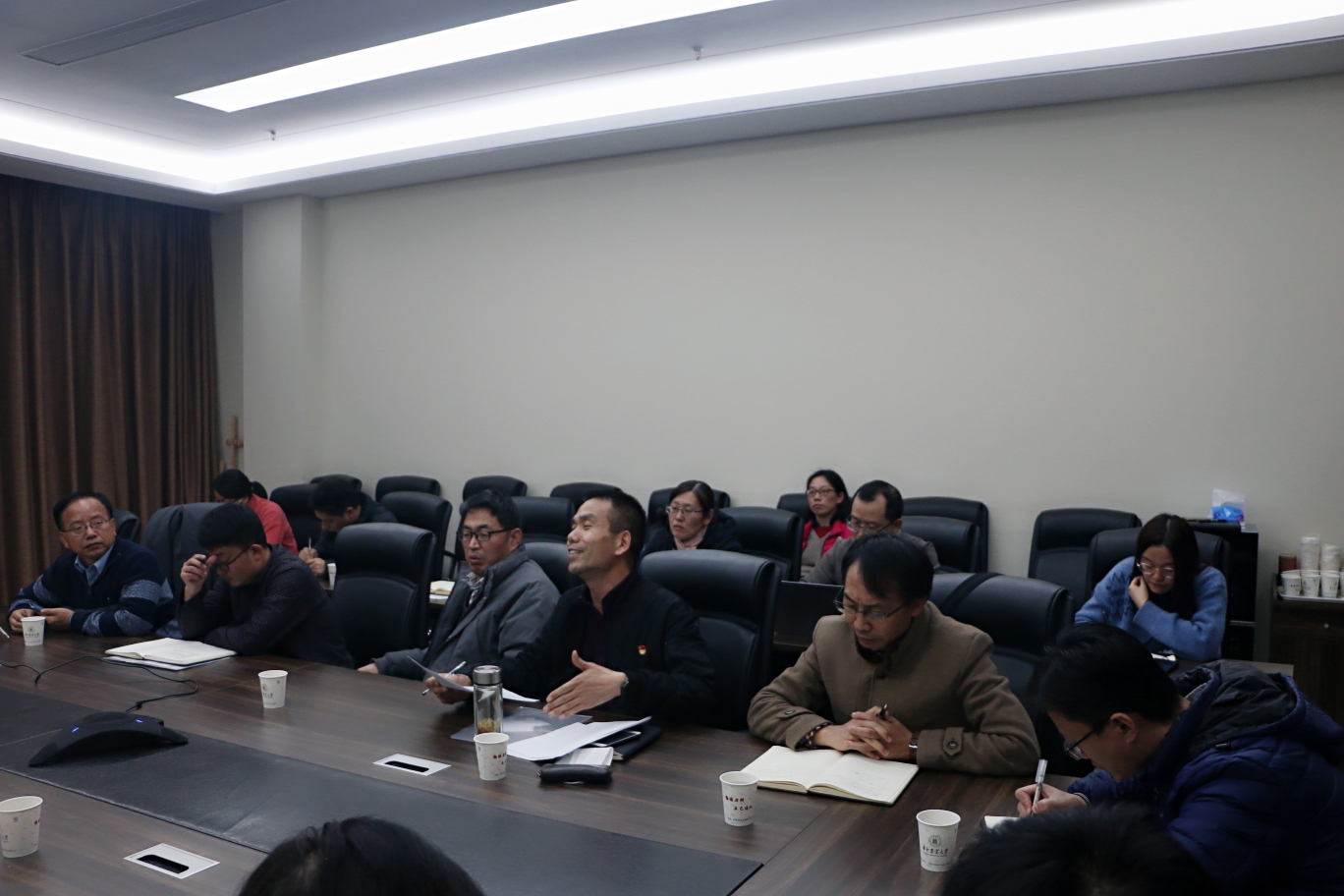 报告结束后,出席会议的教师代表展开激烈讨论。董五辈教授结合自身全英教学经验,建议学校加大对全英文课程的政策扶持力度。罗朝喜教授讲述自己在日本学习经历,分析美国与日本研究生教育的差异,结合中国国情提取当前我国可从中借鉴的经验,提出“以专业实践为主,课堂灌输为次”的观点。