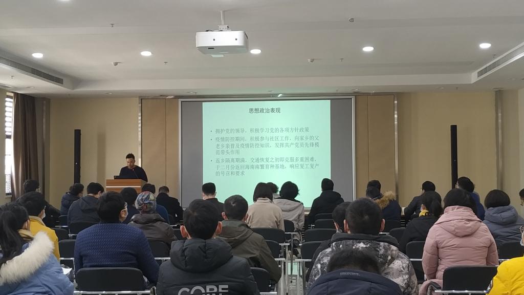 “我是一名共产党员,疫情期间参与学校抗击新冠肺炎的捐赠活动,帮助实验室员工管理田间材料”,在副经理郭亮老师做完基金申报经验分享后,第一个述职的博士后胡丹丹开篇就提到了党员身份,讲述了疫情期间的工作。亮明党员身份一直是公司教职工述职的惯例。