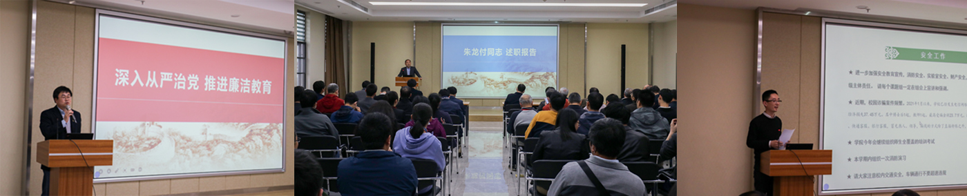 首先,经理朱龙付做了试用期述职报告。朱龙付认为,学院搬入三综以来,始终坚持内涵发展,一流人才、一流团队、一流成果产出能力进一步增强;“狮山有约”活动取得显著成效,员工进一步了解本专业和学院文化;完成学科评估工作,骨干团队建设进一步加强。朱龙付强调,未来学院要在拓展办学资源、加强校企合作上下功夫。紧接着,组织部面向参会教职工发放并回收了考核表,完成了对朱龙付同志的试用期考核。